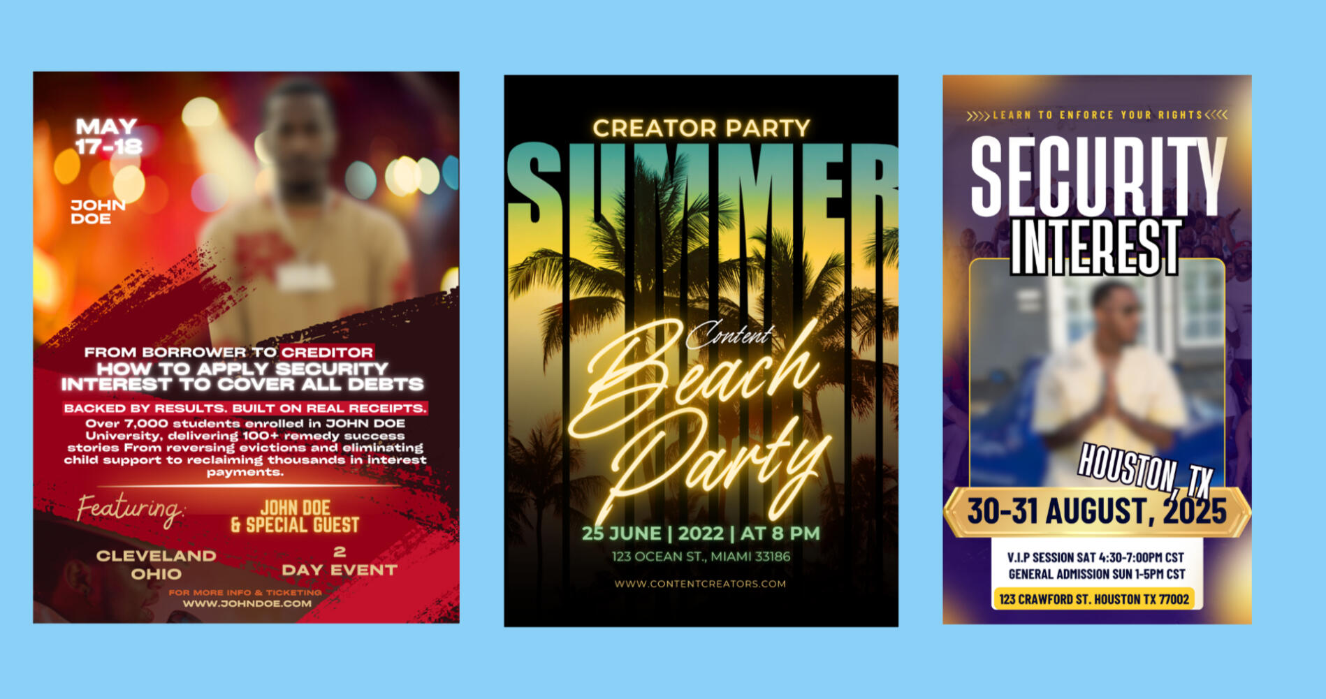 High-converting promotional graphics designed for events, digital launches, and service-based businesses. (Sensitive client data may be changed slighlty and photos blurred to respect privacy)